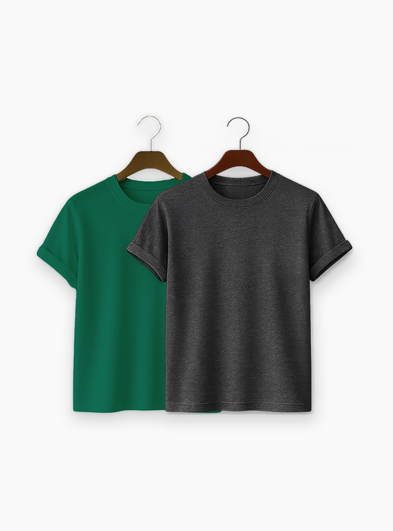 Premium Solid 2-Combo T-Shirts – Gray, Bottle Green