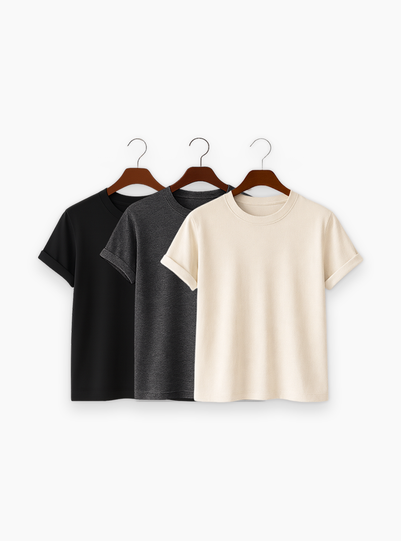 Premium Solid 3-Combo T-Shirts – Beige, Gray, Black