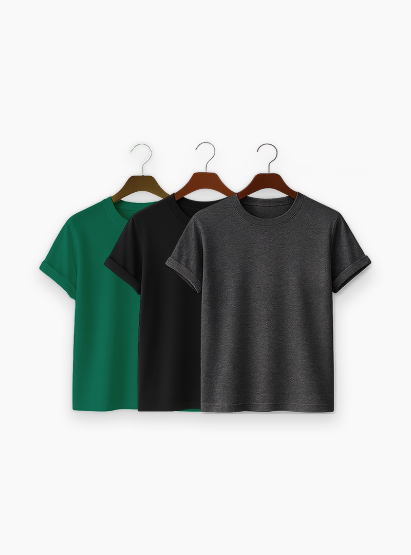 Premium Solid 3-Combo T-Shirts – Gray, Black, Bottle Green
