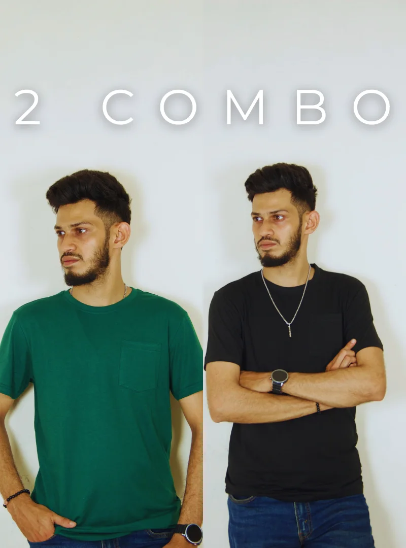 Solid Pocket 2 Combo T-Shirts – Black & Bottle Green